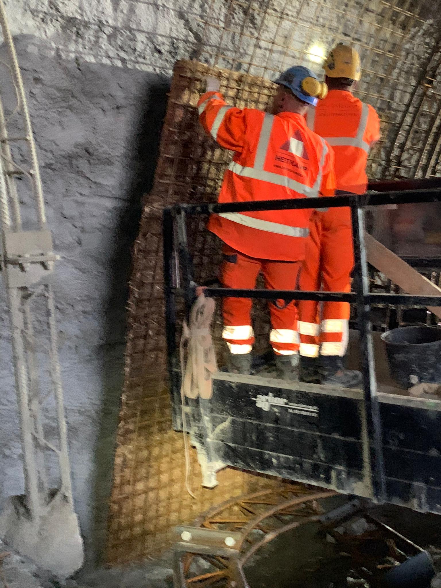Die Elemente in handlicher Grösse werden einfach und schnell auf die Tunnelwand montiert und dann mit Spritzbeton abgedichtet. Durch die schnelle Verlegung (Vorabdichtung und Bewehrung in einem Arbeitsgang) ergibt sich eine Zeitersparnis von >25% gegenüber herkömmlichen Methoden.